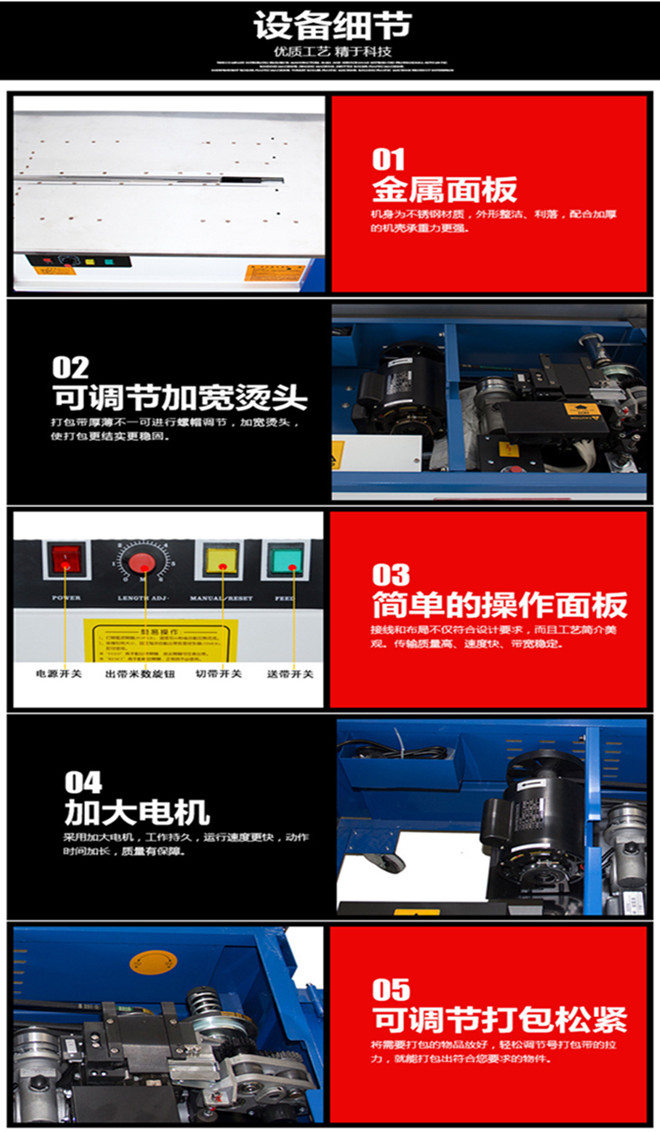 打包機(jī)是以聚乙烯塑料帶為捆扎材料,主要用于商業(yè)、郵政、鐵路、銀行、食品、醫(yī)藥、書(shū)刊發(fā)行等行業(yè)的紙箱、紙包件、柳編箱、布包件的包裝捆扎。
