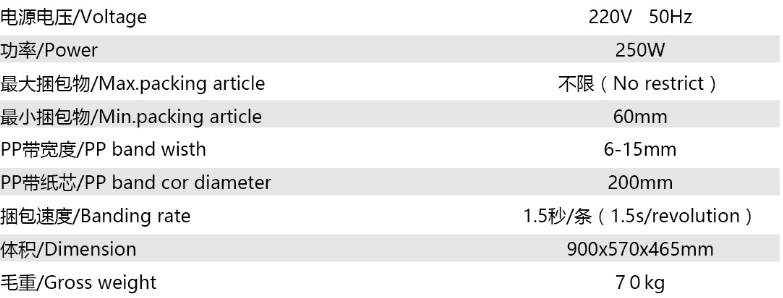 ◆打包機(jī)的參數(shù)
