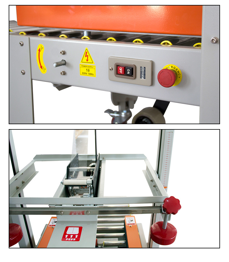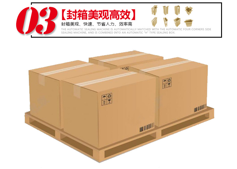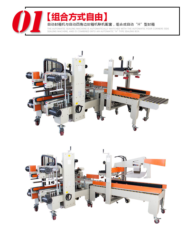 5該封箱機可單機作業(yè),也可與自動化包裝流水線配套使用。